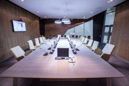 Все по нажатию кнопки . Выключить свет, опустить экран, включить проектор, отрегулировать звук, запустить вентиляцию в режим комфорт, ....